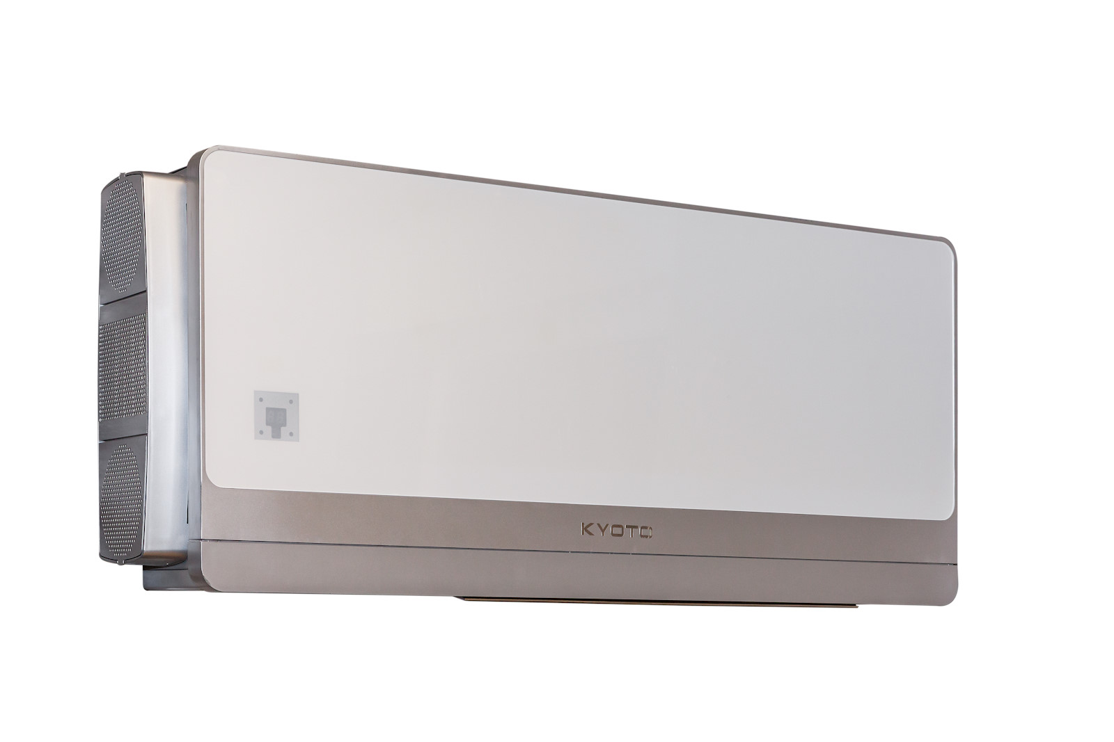 Con un spessore di soli 19 cm e una forma compatta, Kyoto è progettato per essere installato in alto, come i tradizionali climatizzatori Split, adattandosi perfettamente a qualsiasi ambiente. Il suo design moderno e minimalista lo rende un elemento d’arredo elegante e raffinato, che si integra facilmente in ogni contesto. Inoltre, il pannello frontale personalizzabile consente di adattarlo perfettamente all’arredamento con diverse colorazioni, per un’ulteriore personalizzazione estetica.