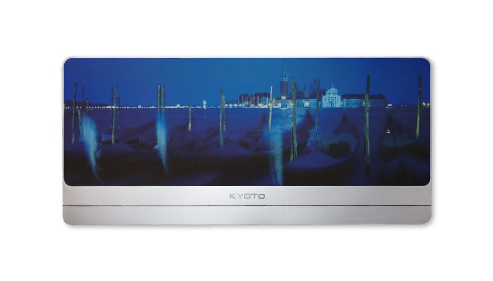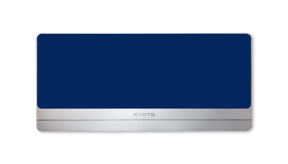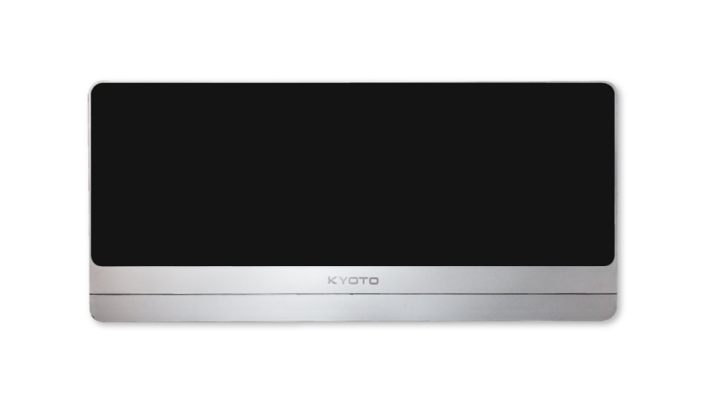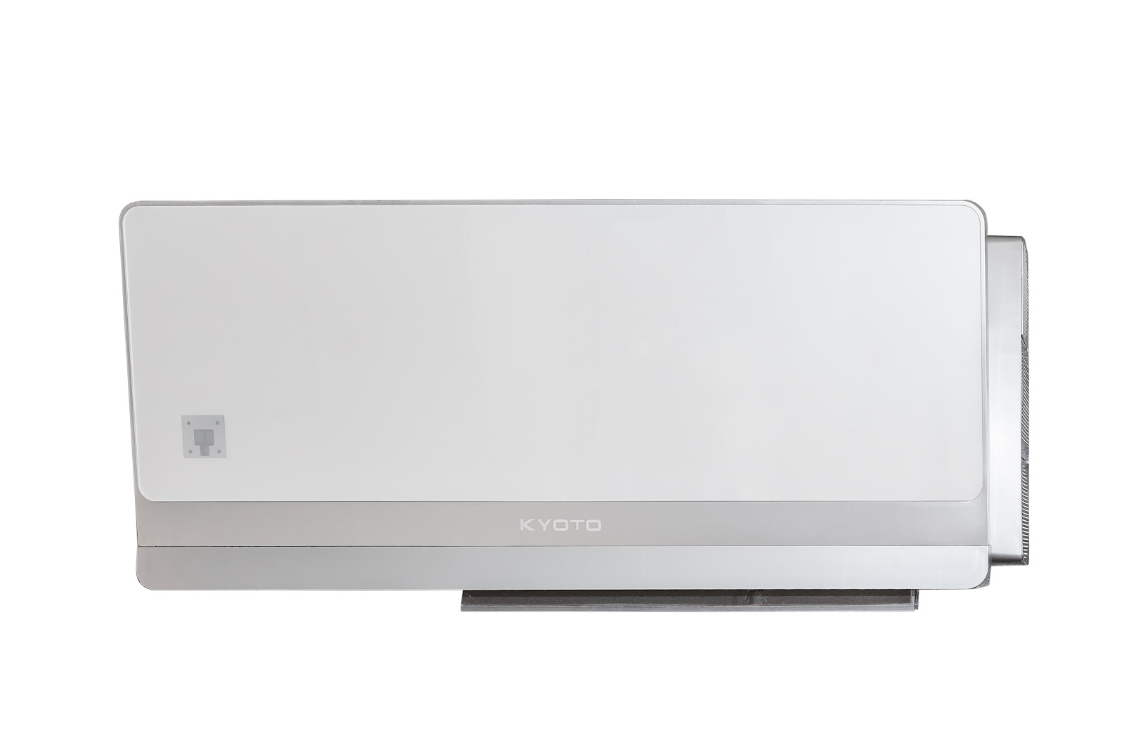 Con un spessore di soli 19 cm e una forma compatta, Kyoto è progettato per essere installato in alto, come i tradizionali climatizzatori Split, adattandosi perfettamente a qualsiasi ambiente. Il suo design moderno e minimalista lo rende un elemento d’arredo elegante e raffinato, che si integra facilmente in ogni contesto. Inoltre, il pannello frontale personalizzabile consente di adattarlo perfettamente all’arredamento con diverse colorazioni, per un’ulteriore personalizzazione estetica.