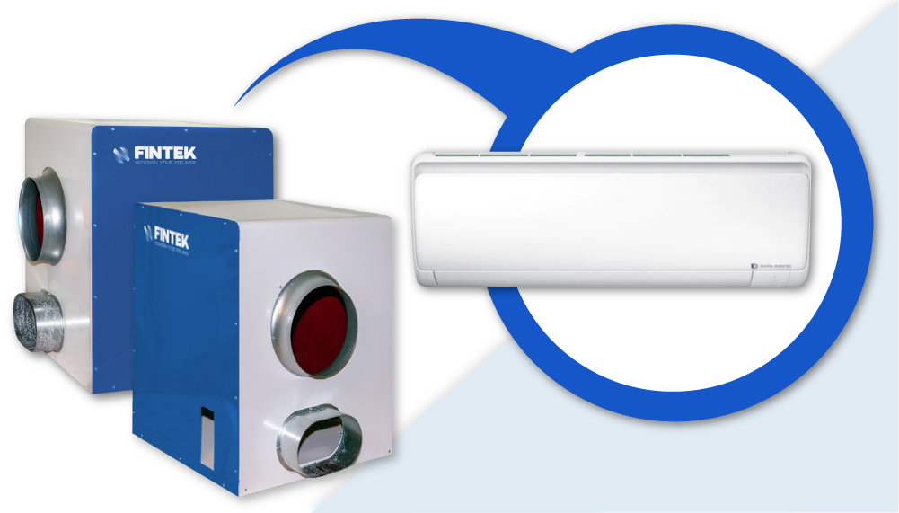Mit Hilfe der Lüftungsöffnungen im Rahmen des Gerätes kann eine Luftzufuhr von außen oder ein Raumluftwechsel ermöglicht werden. Die Inneneinheit verfügt über Anschlussklemmen für die Ansteuerung eines Lufteinlaßventilators. Der Ventilator hat einen Nachlauf von einigen Minuten nach Abschaltung des Innengerätes, um die Einheit vollkommen zu trocknen und Geruchs- und Schimmelbildung zu vermeiden.